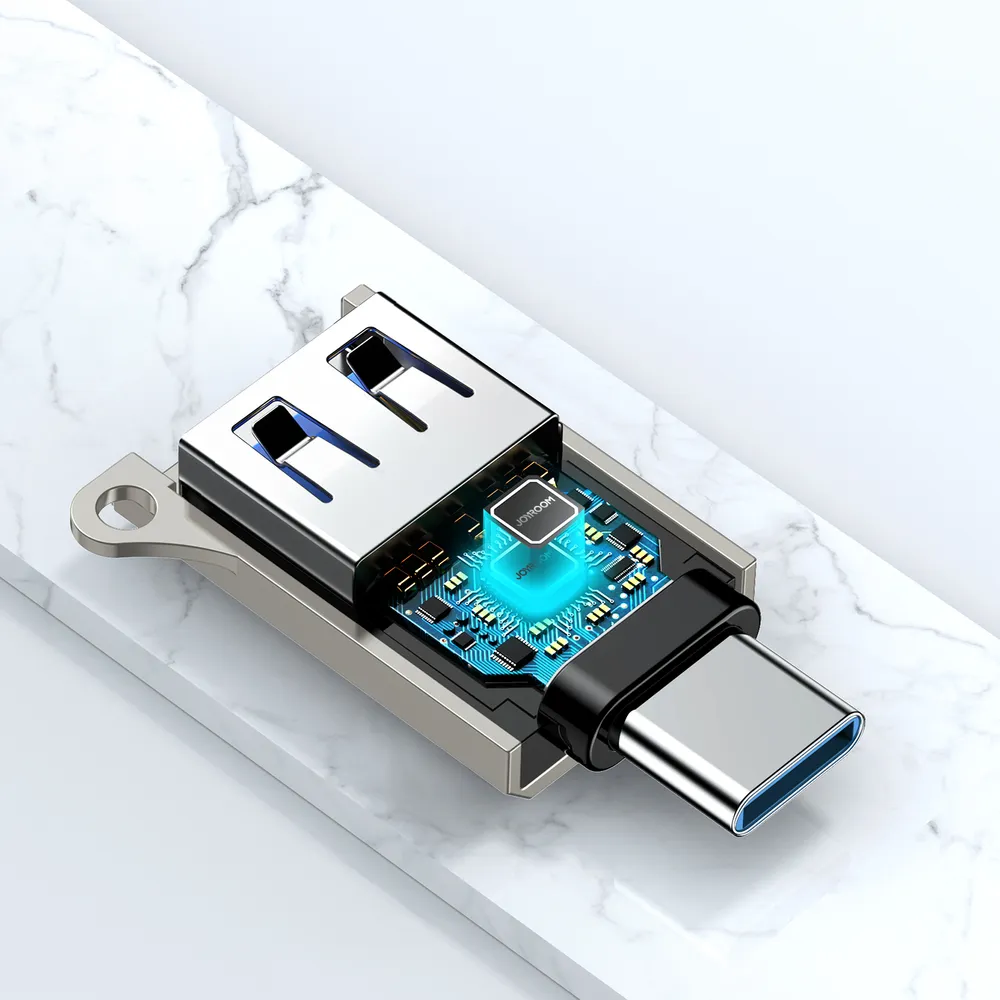 Εξαιρετικά μικρός και κομψός αντάπτορας της Joyroom που σας επιτρέπει να συνδέσετε περιφερειακές συσκευές USB-A σε θύρες USB-C.